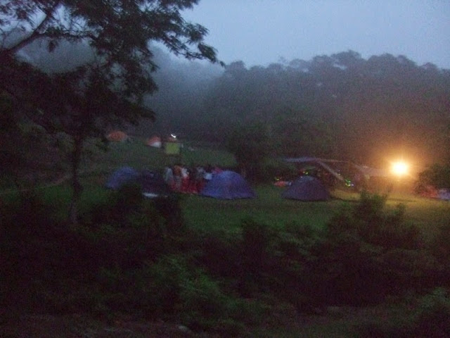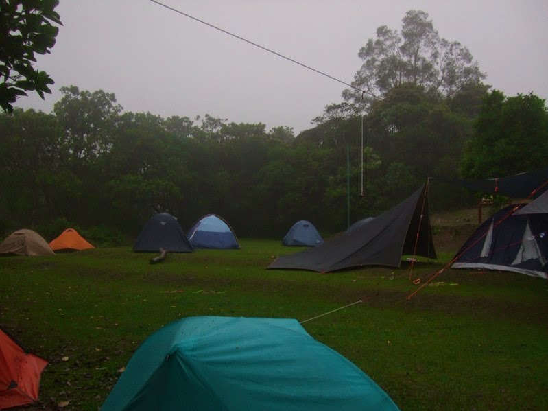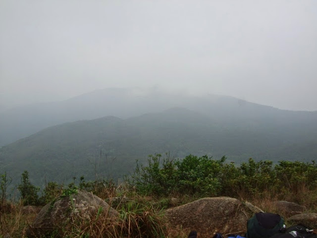 天公不造美,營前不停預報該兩日下雨甚至打雷,最後只能嚐甜頭。臨到達石屋山頂(~450米),霧景迷漫;接近日落時份下抵嶂上,雲霧稍退。天色漸黑,雲霧再濃。晚上八時後,能見度不足五米,看著隔鄰的露幕,猶如隔了一層紗。大霧伴隨雨水,再加偶遇的寒風,狼狽非常,坳仔已沒有餘興接受夜行、拯救等挑戰,早早回營休息。