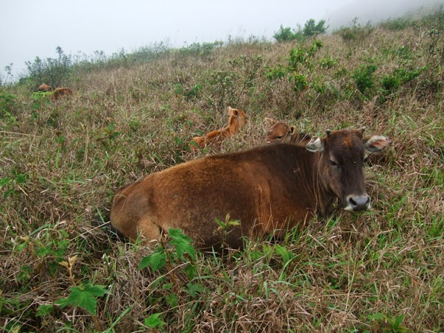還只是七時五十分,已有跑山者冒雨經過嶂上。我們準備及享用早餐期間牛牛一直守在營地,牠們時而朝我們鳴叫,稍感騷擾、畏懼。吃過早餐及清潔餐具後,坳仔偷往士多,享用一客豆花。