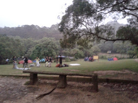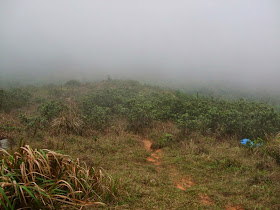 天公不造美,營前不停預報該兩日下雨甚至打雷,最後只能嚐甜頭。臨到達石屋山頂(~450米),霧景迷漫;接近日落時份下抵嶂上,雲霧稍退。天色漸黑,雲霧再濃。晚上八時後,能見度不足五米,看著隔鄰的露幕,猶如隔了一層紗。大霧伴隨雨水,再加偶遇的寒風,狼狽非常,坳仔已沒有餘興接受夜行、拯救等挑戰,早早回營休息。