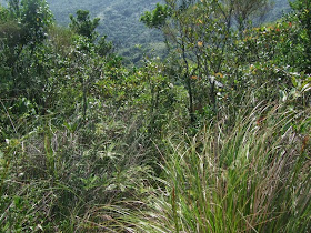 P25-26:如按地圖看,登真正的頂前可先經一個約350米的小山頭,但山徑已完全被箬葉覆蓋,極難前行,要用另一山徑登頂。