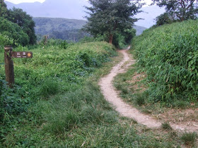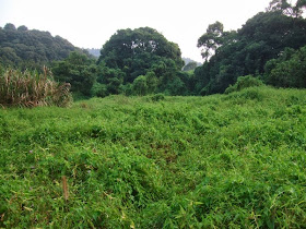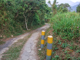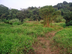 P16-18:沿馬路前走,右邊矮草間另有入口,就是往李屋方向,旁邊有一荒屋。越野車轍仍可清晰看見。