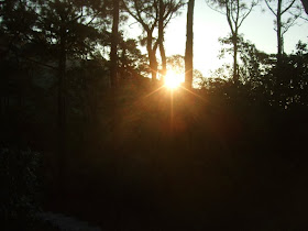 營地位處海拔460米。晚上只睡了兩個小時左右,五點鐘抵受不住13度低溫,醒了。組員們還是很興奮的,無懼清涼,竊竊私語不停。見離日出餘一小時左右,先到營地較高處觀曙光。日出前40分鐘已見曙光,持續時間更長,比暮光更亮麗,隨天空進一步明亮,就到馬路以北的自然教育徑晨運一下吧。半小時內,回到營地,除下營幕,準備早餐,菜式是紫菜火腿通心粉,起碼正常一點吧!九點多,收拾行裝,踏上16公里多的旅程。