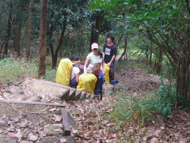 P83-87:接至粗石路,正是CP6之處。在微雨中練過急救技巧,看著雲海,慢慢上山,從後面進入海拔施樂園,施樂園海拔約640米,屬全港最高的營舍。