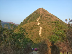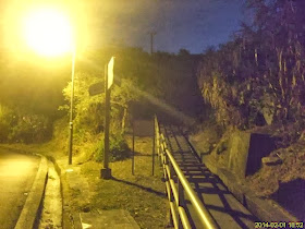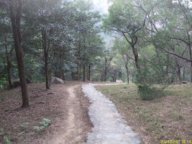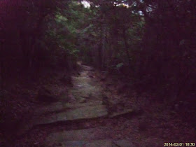離開鉛礦坳,向大埔新屋家下降,因天色明顯轉暗,路面狀況漸不清,不過應是高度不一的泥梯及亂石路,後轉明顯梯級。一個人夜行,可算十分刺激,雖然已帶備電筒,下亂石途中仍有點考驗平衡力;短短廿五分鐘,亦三次發覺野生動物的叫聲或在旁邊的叢林走動。
