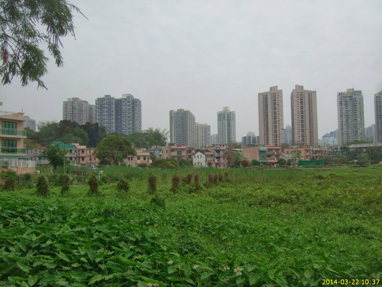 P9:山咀村前未被填去的荒田。背後的沙頭角,高樓處處。