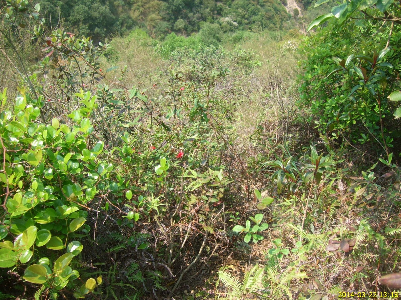 P50:沿路都是亂草。右方的樹木中部帶點彎曲,紅花嶺一帶十分常見。