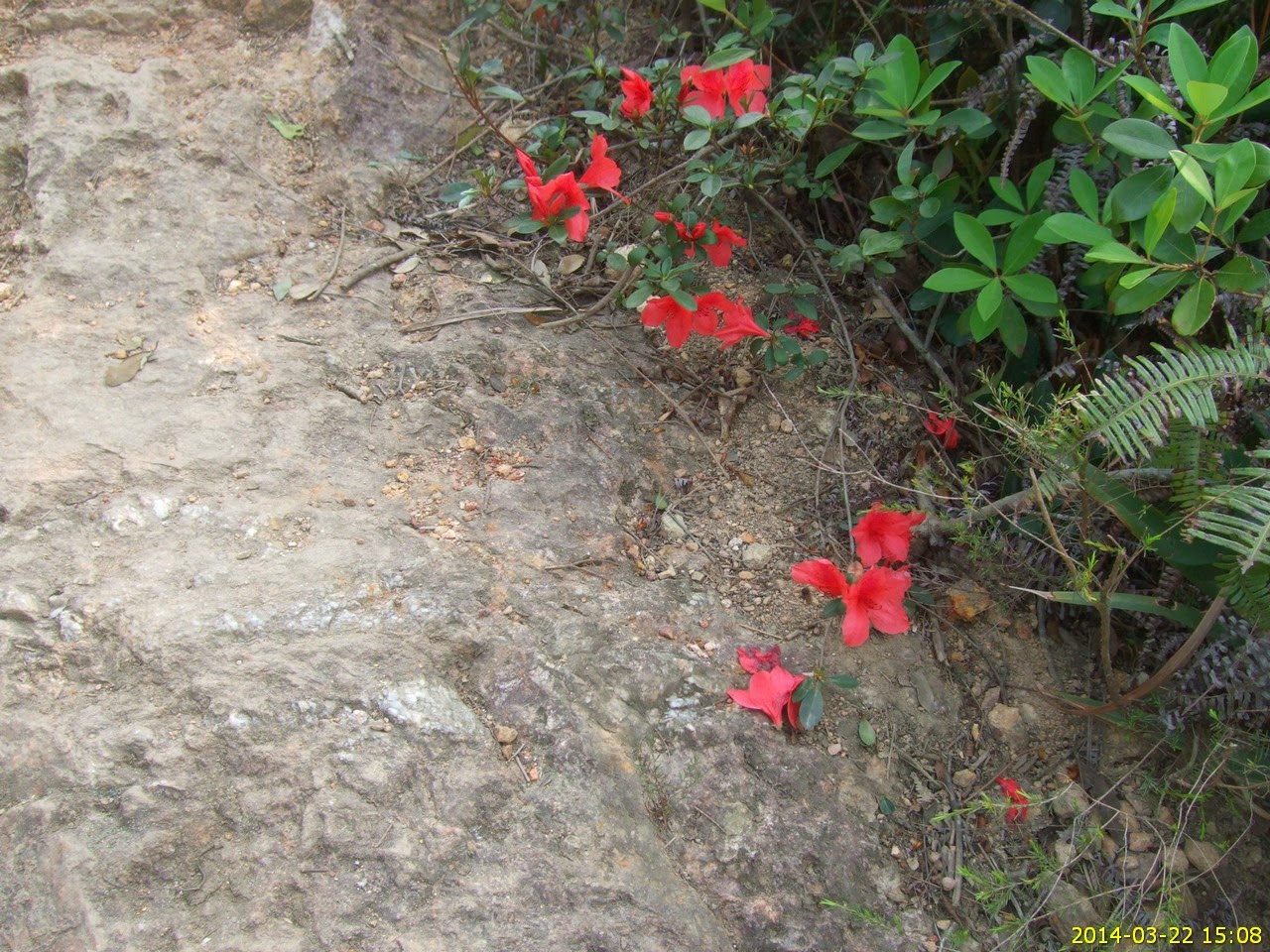 紅花寨北脊的山路較為崎嶇,直降至新桂田右坑中游後途經一段橫山路,並與由紅花嶺北脊山路會合,兩路再下走則到礦洞及新桂田。此日所見,3號洞已經封閉。