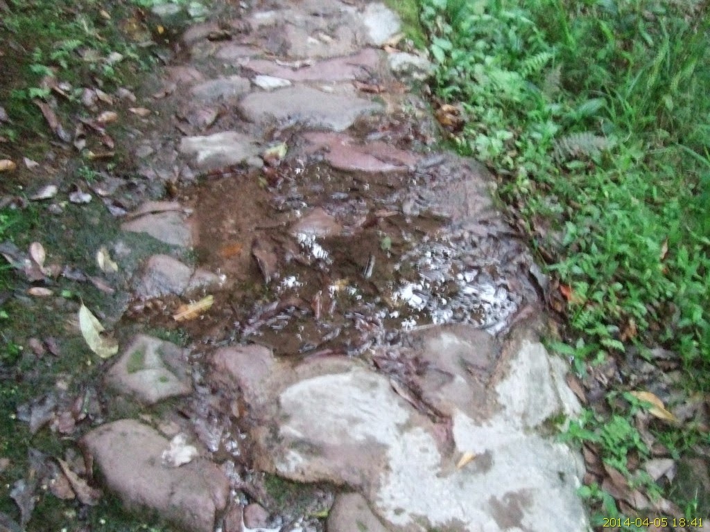 P185:前幾天大雨連場,路上積水較多,幸好有人放了木板,使後來者免遭濕鞋之苦。