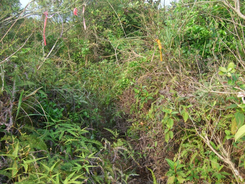 P93:西流江食水減壓缸,這有山路,但感覺不太對路,上登一段,全無絲帶,是否「掘頭路」呢?時間已晚,對綑邊信心未太大,似乎下回再到吧!