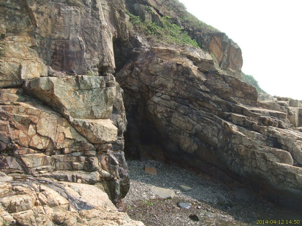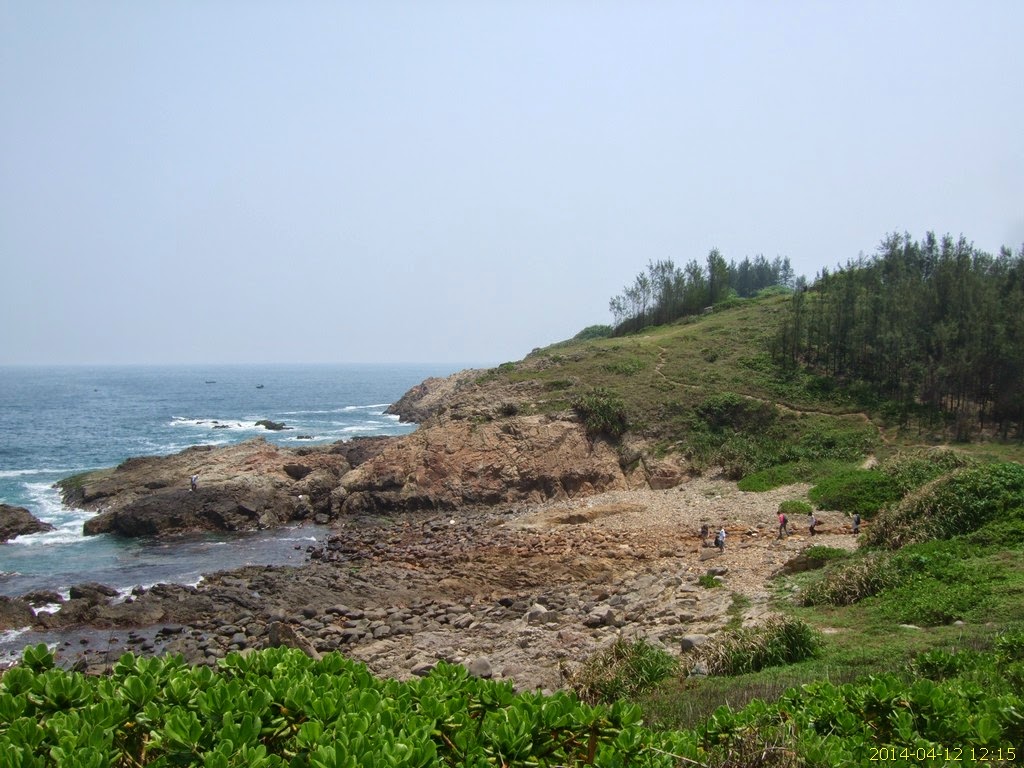 P86-89:領隊然後讓大家觀看崖壁,就在炮台旁邊。海水顏色挺特別的,呈藍綠色,同學們也驚訝,彷如到了日本。