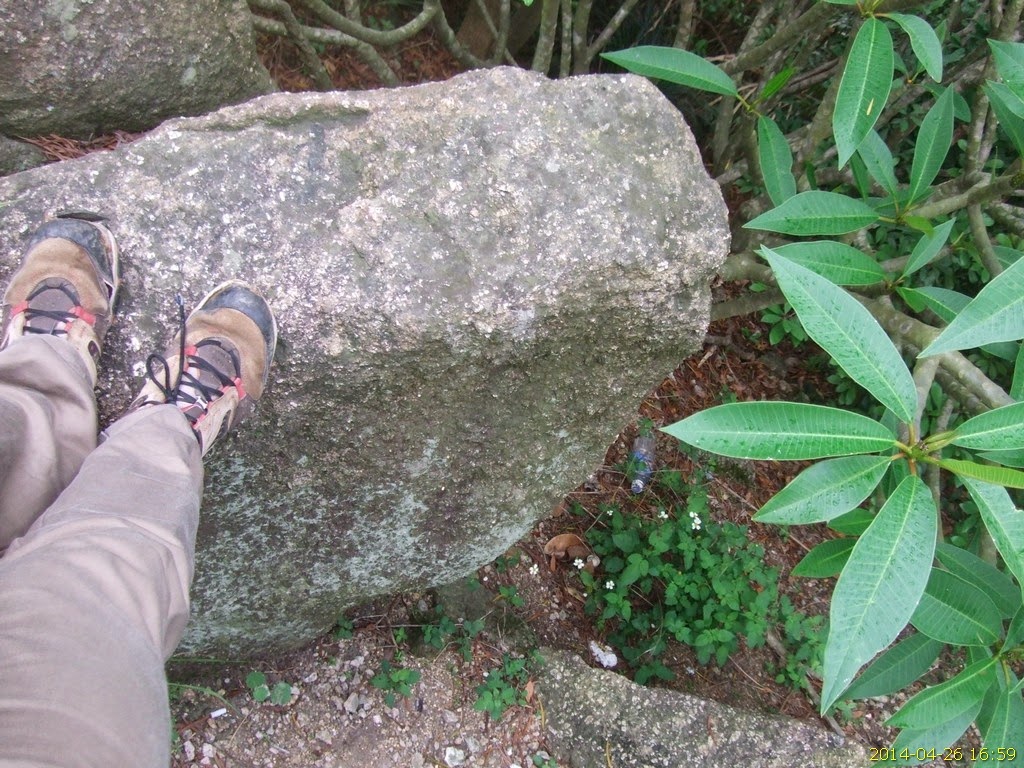 P37-40:「中峰」頂(312米)沒有網測站,但有群石。晨運客不時在石上刻上「打油詩」。