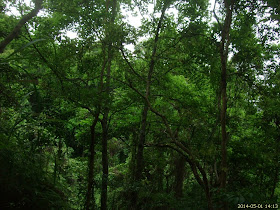 四月開始多雨,三椏至牛屎湖山徑兩旁植物也明顯增多;蜘蛛網同樣多得恐怖,縱使用兩根樹枝輔助,也要「無限上網」。到達牛屎湖村,天空正下微雨,因村林木極多,只聞雨水打在葉上的「沙沙」聲,在此清理一下蜘蛛網及大休。
