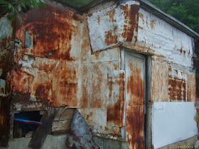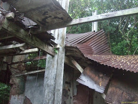 P76-77:轉入水泥小路,走約一分鐘,即見「地標」廢屋,二樓幾乎全部塌下。