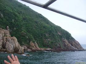 半年前,跟學校船遊印洲塘,也包括觀鬼手岩環節。可惜鬼手岩還未找到,遊船就出發了。是次得導遊指示,輕易找到鬼手岩。行程本來可「親近」鬼手岩,惟風浪太大,只能「遠觀」,無緣「褻玩」。