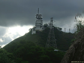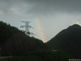 )持續三星期的雷雨天氣幾近尾聲,久違的藍天終於出現,惟天氣還未算穩定,間有雷陣雨。原訂於沙田花心坑回程,但在基維爾營附近得知雷暴警告幾分鐘前發出,「被迫」與一班山友改上大老山。大老山上空曾出現大片烏雲,更有零星驟雨,為時數分鐘,幸附近沒有閃電,東面更有彩虹,遊人紛紛拍攝。