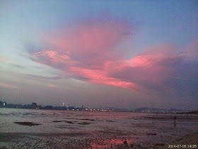 P226-233:雲層急速的轉紅,把泥灘也照得通紅,很壯觀。