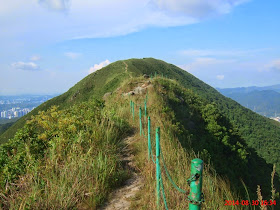 )晴朗的周末,飯後決定再到山上走。過了「立秋」、「處暑」,加上轉吹東風,開始感受到極輕微秋意,正午溫度雖然仍有32、33度,但濕度已悄悄地降低,較盛夏時低了約5-10%,倒是舒適一點。是日在嘉道理農場起步,途經「金銀橋」崖邊山脊,直上大刀屻頂(566米),穿林往北大刀屻(480米),直降至晨運樂土箕勒仔山脊(256米),沿途桌椅、涼亭很多,並建有「太極園」,最後沿「蝴蝶山徑」下降至粉嶺火車站作結。