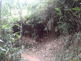 P37-39:前走幾步,有片小竹林,路旁有小洞,泥上的痕跡由小洞直線穿越對面的樹林,這裡動物真多,不只是山豬,還可能有蛇。