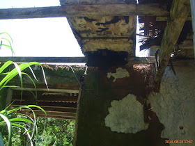 P164:廢屋背面,一樓的石牆仍是大致完好,但二樓的鐵皮屋已近乎完全崩塌。