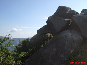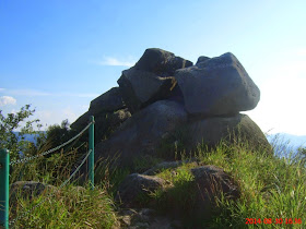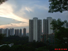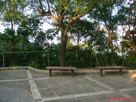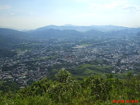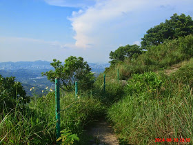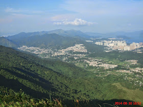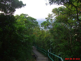 )晴朗的周末,飯後決定再到山上走。過了「立秋」、「處暑」,加上轉吹東風,開始感受到極輕微秋意,正午溫度雖然仍有32、33度,但濕度已悄悄地降低,較盛夏時低了約5-10%,倒是舒適一點。是日在嘉道理農場起步,途經「金銀橋」崖邊山脊,直上大刀屻頂(566米),穿林往北大刀屻(480米),直降至晨運樂土箕勒仔山脊(256米),沿途桌椅、涼亭很多,並建有「太極園」,最後沿「蝴蝶山徑」下降至粉嶺火車站作結。