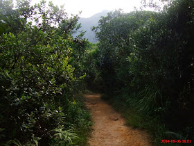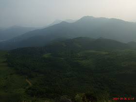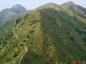)是日天氣又悶熱起來,加上吹著東北風,把珠三角地區工廠的污染物帶到香港,令能見度減低(吹正北風或西北風下能見度則更低),悶熱天氣下有助熱對流發展,就在行程最高點,境內另一面就有雷雨爆發,幸好當時完全無聽到任何雷聲,也全不知情。是日由水浪窩起步,大致順走麥理浩徑四段,途中挑戰大金鐘頂,並在五聯達學校遺址接古道至大水坑完程。