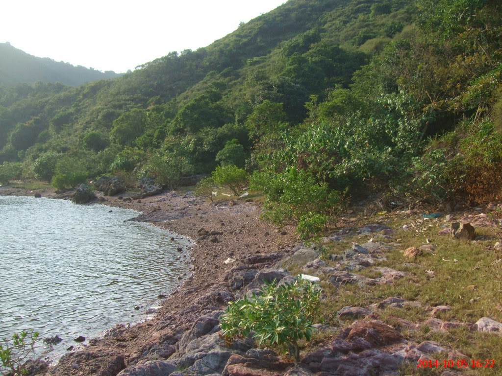 )晴朗及帶點涼意的星期天,就走較長的路線吧,是天再走西流江一帶,「意外的」全綑磨刀坑、牛屎湖、西流江半島的海岸線--原訂在磨刀坑海邊經古道直往牛屎湖村,雖然近一兩年仍有人走過,但是日上山中段發現前無去路,只見似是而非的路胚,或是野生動物挖泥的痕跡,決定折回海邊。