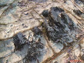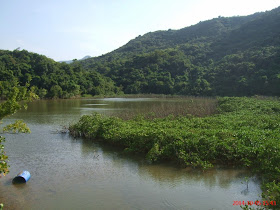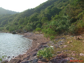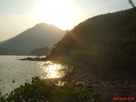 晴朗及帶點涼意的星期天,就走較長的路線吧,是天再走西流江一帶,「意外的」全綑磨刀坑、牛屎湖、西流江半島的海岸線--原訂在磨刀坑海邊經古道直往牛屎湖村,雖然近一兩年仍有人走過,但是日上山中段發現前無去路,只見似是而非的路胚,或是野生動物挖泥的痕跡,決定折回海邊。