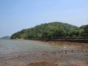P217-218:對面的吉澳黃幌山。兩村狗隨即停留在舊碼頭附近。