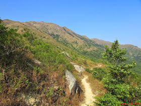 是天先走「南大嶼郊遊徑」,為一會兒的「芒草世界」之旅略「吊癮」。郊遊徑全長十公里餘,由塘福經伯公坳到南山附近,處於大東山腰的路段約七公里;雖然上落不大,但地上亂石很多,難度無形中增加了。這段景觀不太多,只有小段可欣賞芝麻灣、貝澳及嶼南海域的風光。走了約個半小時,抵達上登大東山的路口。
