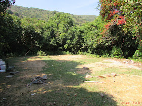 由北潭坳出發,經赤徑村一排村屋,這裡又多一家士多復業了。此後一直沿海邊小徑走,直至經青年旅舍前面的露營草地,這是上登東龍二脊的路口,十分隱蔽,很容易錯過,坳仔就一直前行至青年旅舍入口。上山初段為密林路段,更有一些似是而非的分支路,小心誤走。隨著高度繼續上升,山徑逐漸清晰起來,沿布帶路橫移近半小時,即抵東龍二坳。東龍二坳有數支路往蚺蛇坳或高流灣等,每路亦有多道布帶,但沿偏東方向下走一會,隨即過溪,再沿林中北走一段抵達蚺蛇灣。