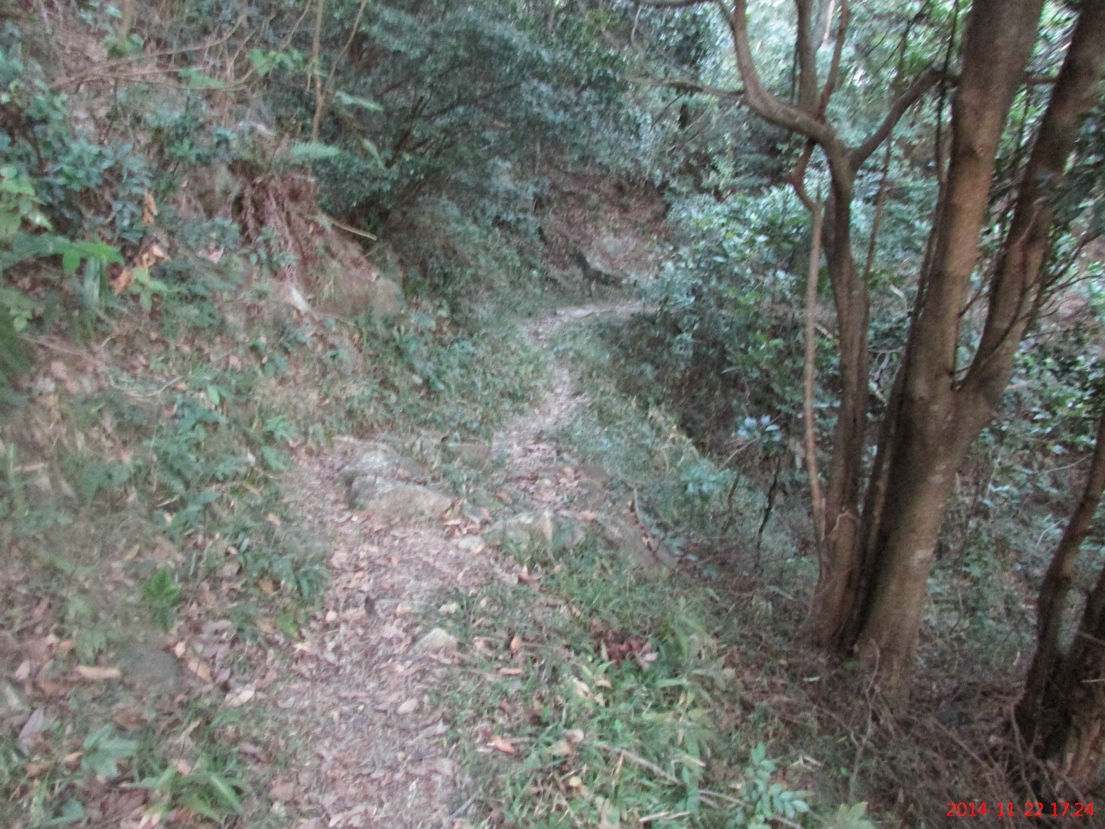 P19-21:路邊可見昔日耕作的痕跡。在此有一十字路口,左上大帽山、鉛礦坳或相思林徑,右下城門引水道。在此左轉,登相思林徑。