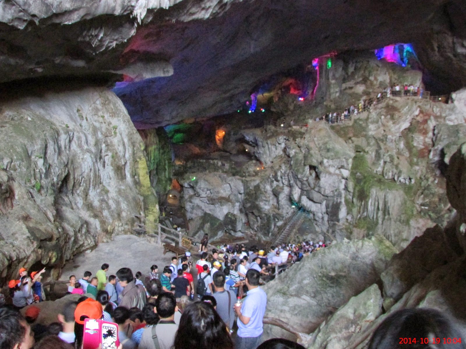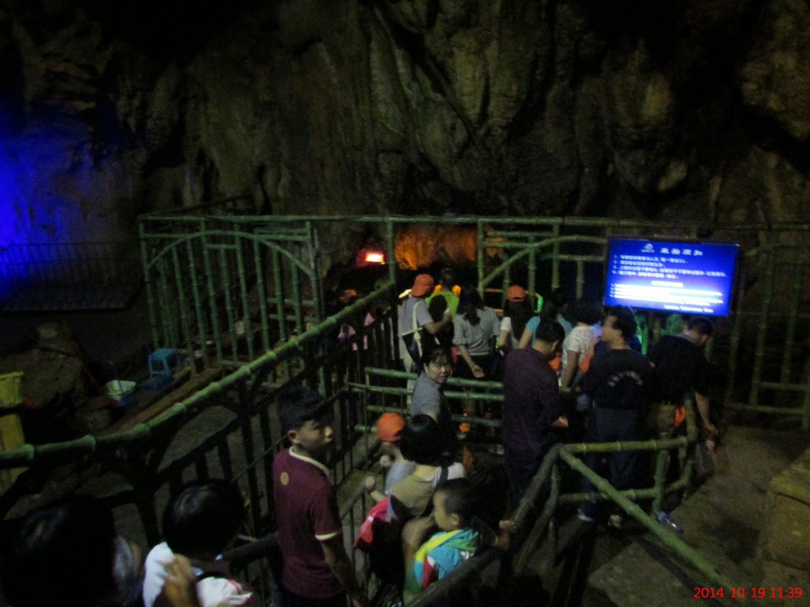 是日地下河遊客很多,排了大半小時才能入場,未知是否國慶調休關係,上周末只有一天休息(11號星期六變成「閒日」),不足以短途旅遊,就把兩個周末的人流擠在一起--不過黃金周期間遊人更多。因遊人非常多,景區導遊也沒有為團友詳細介紹洞內的景觀,步伐也很急。只走了約半小時,即排隊等候地下河遊船,隨即回程,最後在東莞長安鎮晚飯。