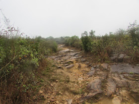 在W131附近開始沿繞絲溪畔下降新娘潭,抵達馬路時正好下雨,且雨勢漸大,但那裡竟然無電話訊號,不能得知雨帶何時會離去,決定冒雨續走至烏蛟騰,在那裡待了一個小時。雖然當時總雨量僅五毫米左右,但由九擔租往上苗田路上,也可見幾片大水窪,需涉水而行,幸好上下苗田沿途澗道的水流仍少,所以在雨中遠足,難度確是提高不少。