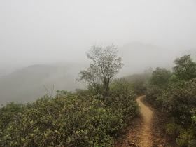 雨後在下苗田上大峒,山頭上霧氣頗重,往觀音峒、鹿湖峒途中不能欣賞船灣淡水湖的風光。不過,隨高度逐漸下降,鹿湖峒後路段視野開始清晰,能見度回升至五公里左右,雲更是直接飄在湖面上,可算奇觀。再經虎頭沙、三門山,六點鐘抵達長牌墩,先休息一下,再試新路,經伯公咀返回船灣淡水湖副壩、主壩。漁護署已在鵝髻頂及長牌墩旁開闢了新路,難度較以前大大減低,景觀也較佳,其中後者更建了樓梯(當然舊路仍可通行,只是署方不建議罷了,但附近植物生長得快,相信幾年後舊路將會消失)。