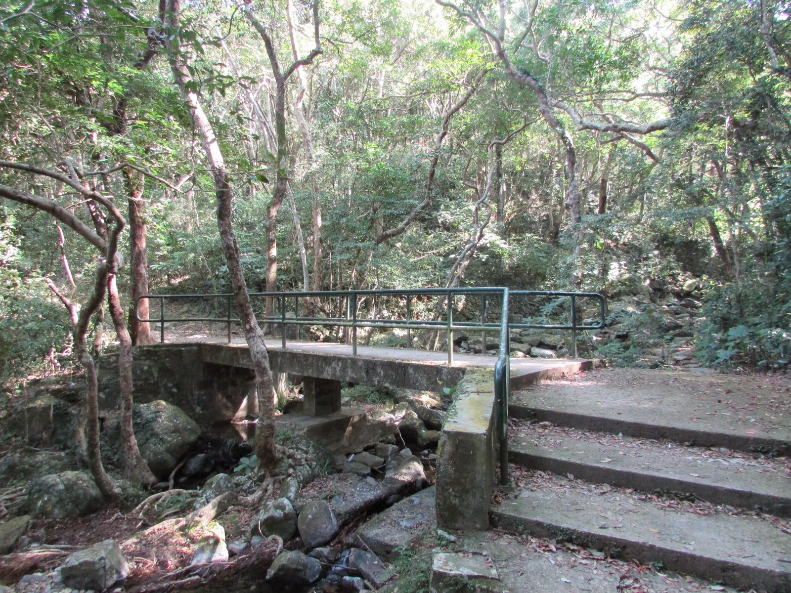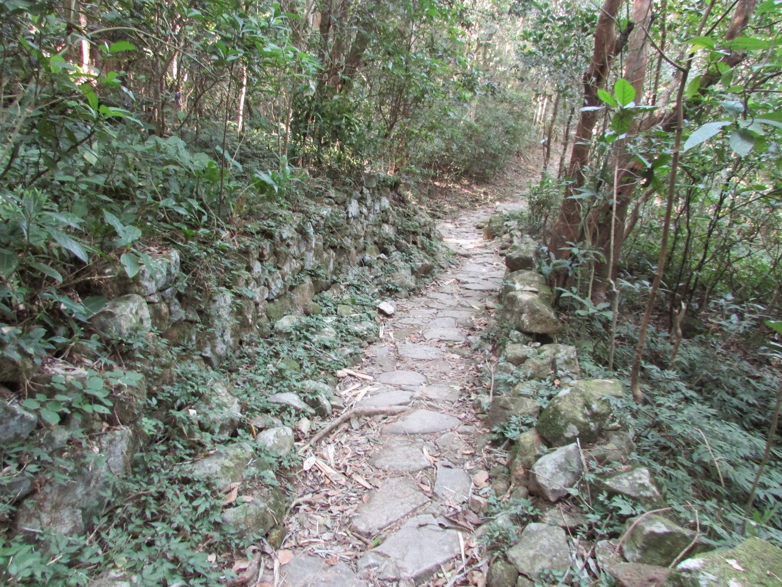 是日在茅坪坳(五聯達學校遺址)不沿「大路」經茅坪返回大水坑,而是先繞入黃竹山古村。古村位處石芽山、水牛山的谷中,海拔約290米,昔日規模不少。山上交通不便,村民早年已搬走,村落已全廢,部分聯同附近的茅坪、昂平、石壟仔村村民遷至西貢大水井另建新村。至於臨到古村,可見約一、兩百米長的竹林隧道--但不是黃竹洋村旁的竹林,其實只是境內常見的竹林而已。沿石磴古道下走,經茅坪、梅子林回大水坑作結,並在附近酒樓享用特價下午茶,茶後隨即「開工」去。