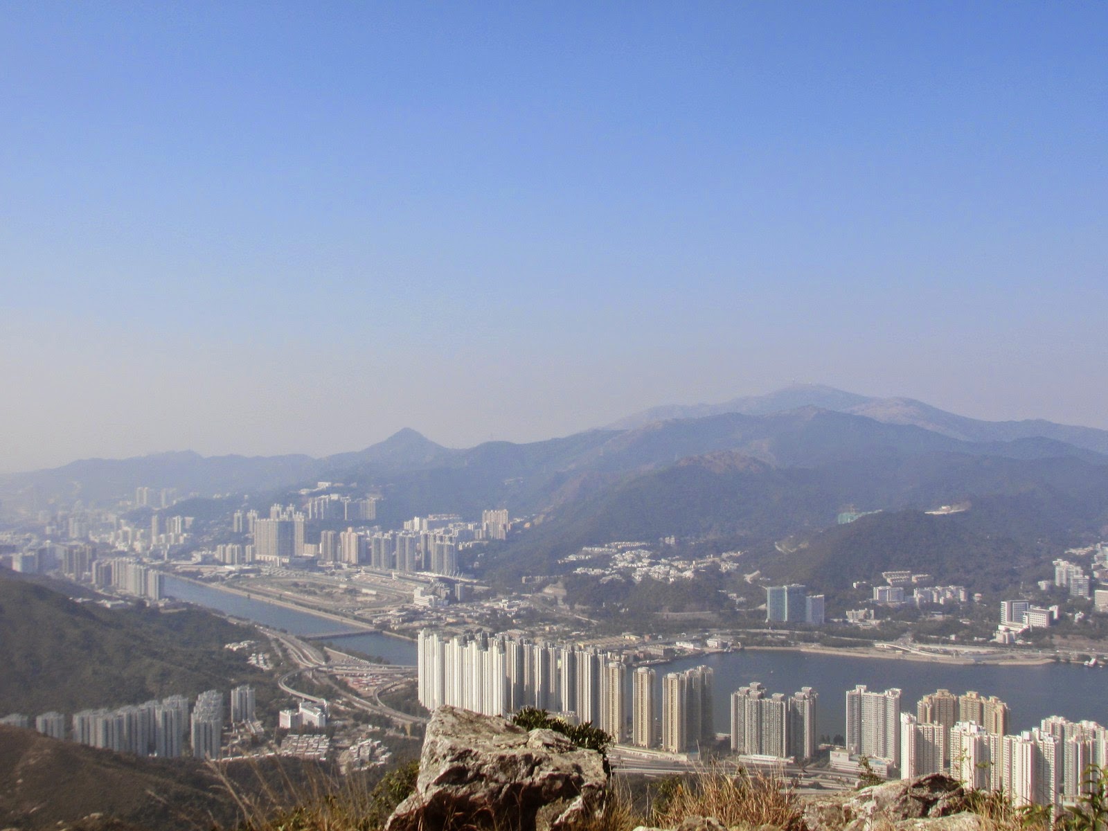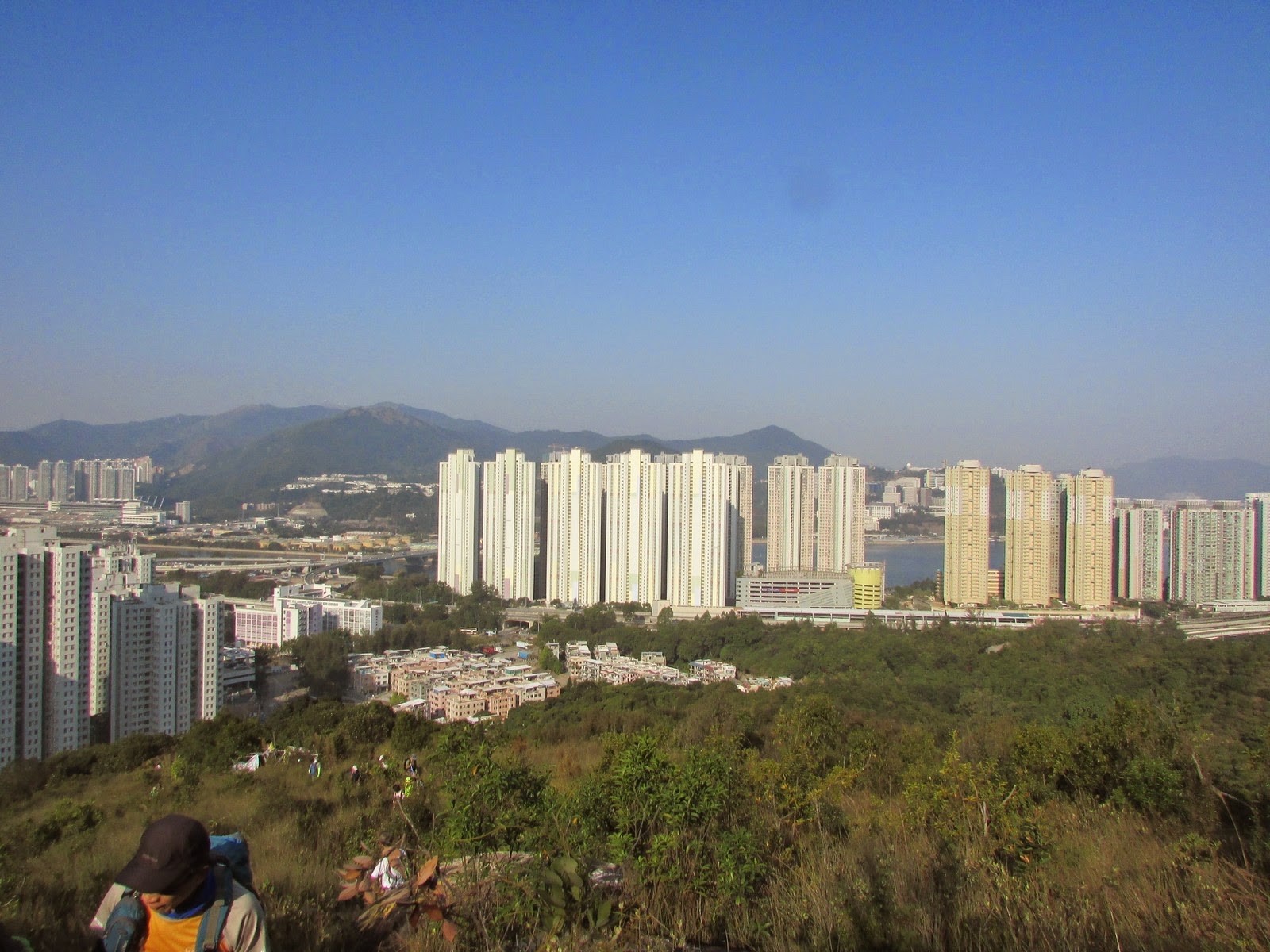 P16-22:藍天及高能見度下的沙田新市鎮及大水坑。