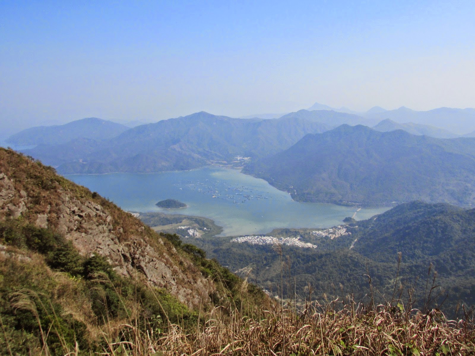 P127:企嶺下海、榕樹澳魚排及灣篤處的榕樹澳村,亦可遠觀石屋山及更遠的蚺蛇尖。