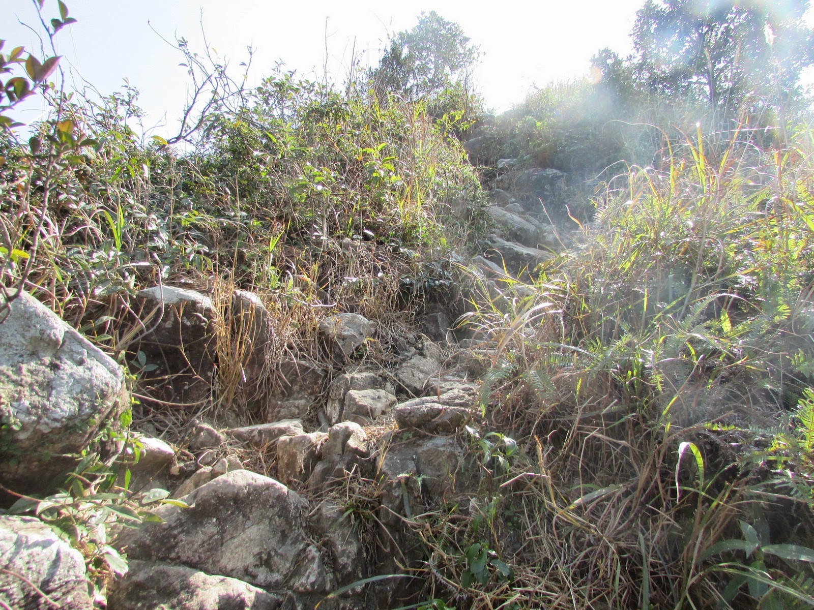 )某行山隊是日開設上吊手岩之路線,加上天氣奇佳,能見度不俗,成全了這稀有的平日遠足日。早上八點多的地鐵,相當擠迫,九成九的人都趕往上班上學,但坳仔卻是餘下百分一的人,感覺非常特別,起碼兩年內未經歷過。所有上登吊手岩的山徑都十分崎嶇,部分更要攀崖而上,不適宜新手前往,是日則採取最「容易」的路線,但仍不能掉以輕心。