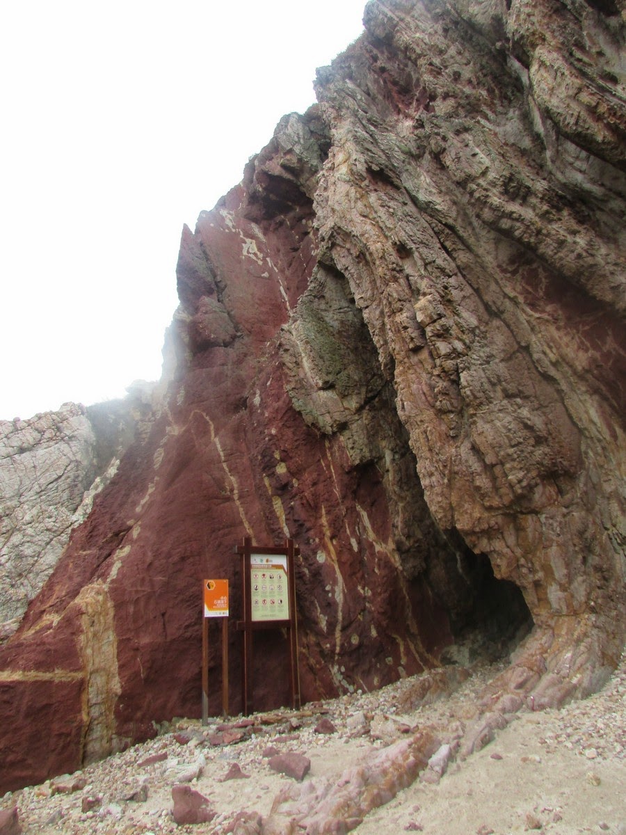 P178-179:看到暗紅色的石牆與小海蝕洞,代表已到鬼手岩旁。