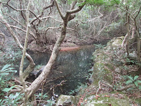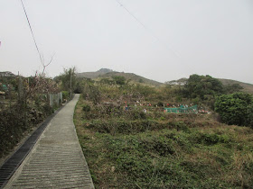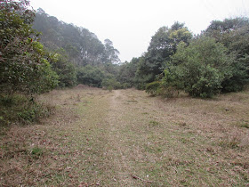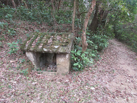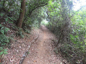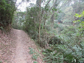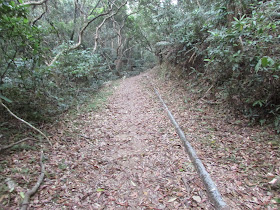 回大欖林道前,先經小寮屋旁,驚聞狗吠,想不到現時山中竟然仍有人居住。走了一段,接入田夫仔與清快塘之間的水管路。回到馬路,再看地圖,其實只是在田夫仔以東繞了個三角形。後沿林道的馬路西走,近半小時,抵達元荃古道及清快塘之間的路口。