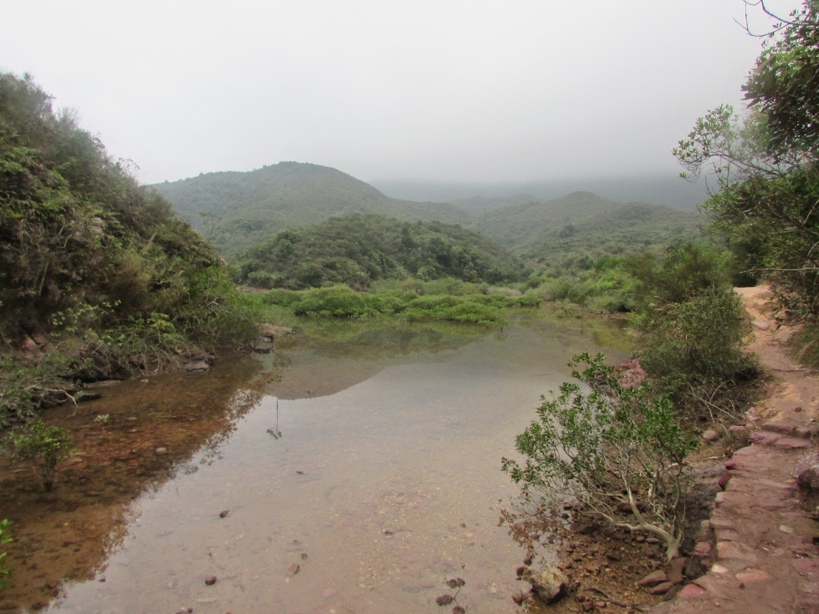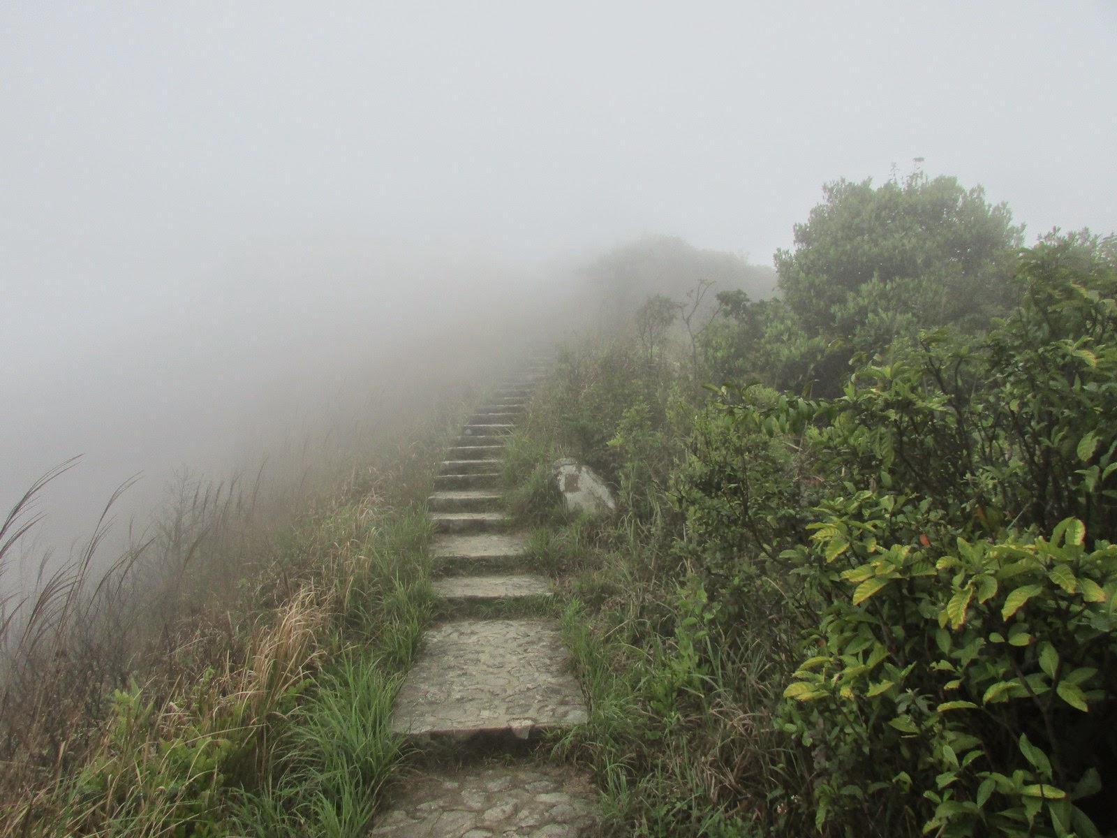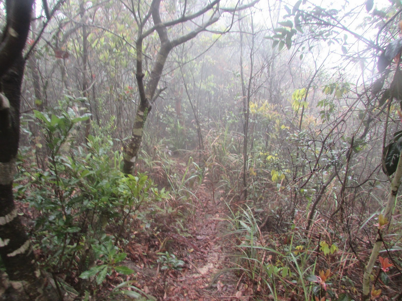 三月天持續大霧,但是日仍跟遠足隊挑戰「馬騮崖」,由春風亭直上仙姑峰(511米)。「馬騮崖」位近山頂(海拔約430米),曾是一九九六年八仙嶺大火五名師生罹難之地,同日另有十三名師生受傷,其中一名倖存者,雖然變成嚴重殘疾人士,但憑堅毅的意志,幾年前獲選為「香港十大傑出青年」,現更擁有博士學位,並創立了心理輔導中心。先在仙姑峰山頂休息一會,因風景欠奉,故我們快速穿越八仙嶺群峰。過了純陽峰,然後就沿滑滑的林中小徑下達關爺坳(橫山腳上、下村間,因那裡據說曾建有關帝廟)。穿過已荒廢的橫山腳下村,再下走半小時即到新娘潭。因時間只是一點多,故再探西流江,但因潮漲關係,未能成功前往,最後沿下苗田返回烏蛟騰作結。