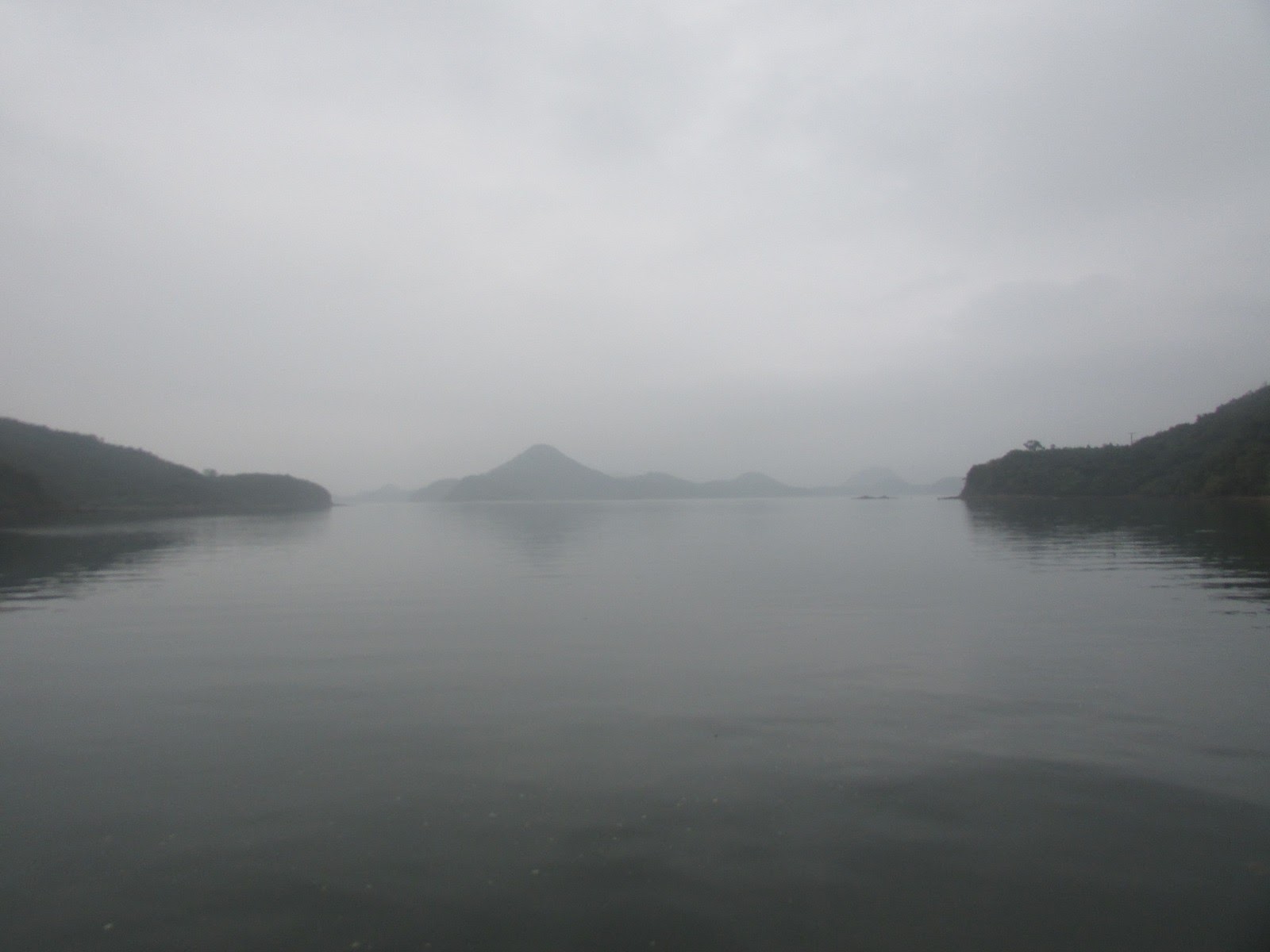 P1-2:大尾篤起步。雖然位近海平面,但能見度相當低(9:57)。