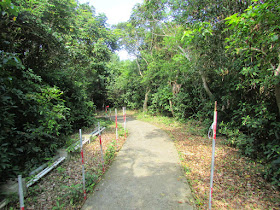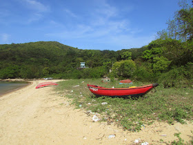 離開高流灣,試著上走至119米山頭後再沿水管路往蚺蛇灣,不過走到山頂附近,只見一些山墳,卻不見三角網測站及其餘明顯支路,相信走錯入口了。回到高流灣,沿海邊水泥徑往盡頭走,那裡雖有環腰小徑,但頗為崎嶇,且看似無人踏足過,蜘蛛網極多之餘亦無引路帶,相信這非往蚺蛇灣的小徑了。正以為要原路折返東龍二坳時,卻在蛋家灣的小草地上發現一些引路帶,上走一會可見輸水管,相信那是往蚺蛇灣的水管路。半小時後到達水清沙幼的蚺蛇灣,可惜時間不早,無暇細賞那裡優美的風景。接近蚺蛇灣時忽然看到有位遊人從對面走來,原來他錯走了路,坳仔當然要為他帶回大路,因為大家都不知道黃昏還有沒有船期從高流灣回程。
