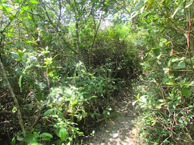 P241-244:在林屋、巫屋間的草地接入小徑,這裡有露營人士遺下的痕跡,亦可觀蚺蛇尖。