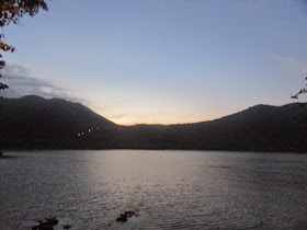 再經東龍二坳,上走海拔約260米的小山頭,那裡風勢很大,間有薄霧飄來,在斜陽配合下景觀極佳。黃昏的赤徑,環境倍感優雅,附近的小草坪則有一群野牛在吃草,還看到一頭小狗伏在水流小徑上,那面孔相當熟悉,相信是住在高流灣的神犬了。在此拍攝忘形,似乎忘了上星期的「教訓」,再在同一時間步經廢屋群,幸好全無野豬出沒之象,或許是日天晴,日落後廿多分鐘的天色仍為明亮,故還未到牠們的覓食時間。離開赤徑,快速的回到北潭坳,結束大半天環遊高流灣半島旅途。
