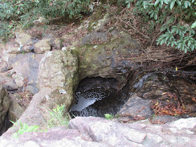 P75-79:小心碰頭。昔日附近的村民更疊著一堆石頭,用作支撐水管。
