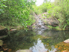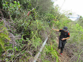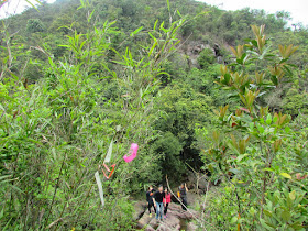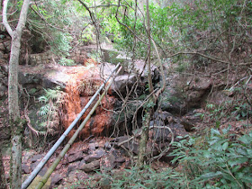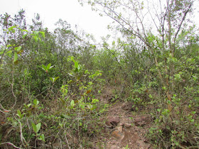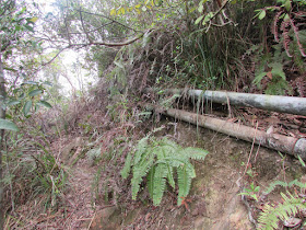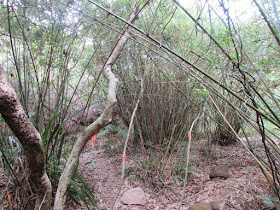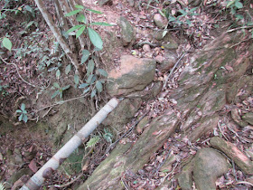是日採用新路,不經牛角涌下游,改經「水管路」往吉澳供水水塘,然後才下抵紅石門村。該路較為迂迴且崎嶇(不停的穿越一排水管),故荒廢多時,去年底某遠足隊才把此路重新打通。在潮漲時牛角涌下游會被淹沒,該路亦可成為「迷椏走廊」往紅石門村的後備路段。但要留意的是該路較少人踏足,故路況較凌亂,以依靠遠足隊的引路帶為主,我們曾一度錯走了路。