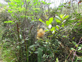 由新娘潭出發,「例牌」經烏蛟騰、九擔租、上下苗田,然後沿警告牌後的「迷椏走廊」走上兩個多小時往紅石門,途經馬尿河、黃竹涌、大水湖,其中下苗田至黃竹涌一段更因歧路眾多,易讓人迷失方向,這亦是「迷椏走廊」名字的由來。在長草、灌木叢路段不停穿梭,並經一堆鳳尾竹叢林,突感視野開揚,原來已過了黃竹涌,可從高處下望大水湖海灣的景致。因前一天持續下雨,故蜘蛛網極多,估計有二百多個,也使步速大為減慢,我們在下午近三點才到達紅石門。