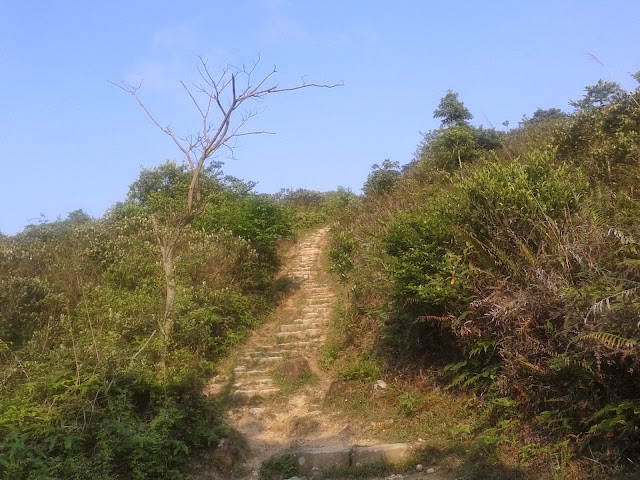 從水浪窩出發,又要沿沉悶的引水道馬路往榕樹澳。未知全球暖化問題是否日益嚴重,還是今年是厄爾尼諾年的關係,未到「立夏」節氣,感覺已處盛夏,下車後不久,就已汗流浹背!慶幸的是,因交通管制關係,沿途車子不算太多,否則在路上不斷的左閃右避,只會消耗更多體力。走了四十五分鐘,到達榕樹澳附近,有山路上「榕北坳」,屬「榕北走廊」的前半段,路況大致平緩易走(因那裡也屬越野單車徑一部分),穿過引水道起點及澗道後開始上山,而近榕北坳處則是類似原始森林的路段。