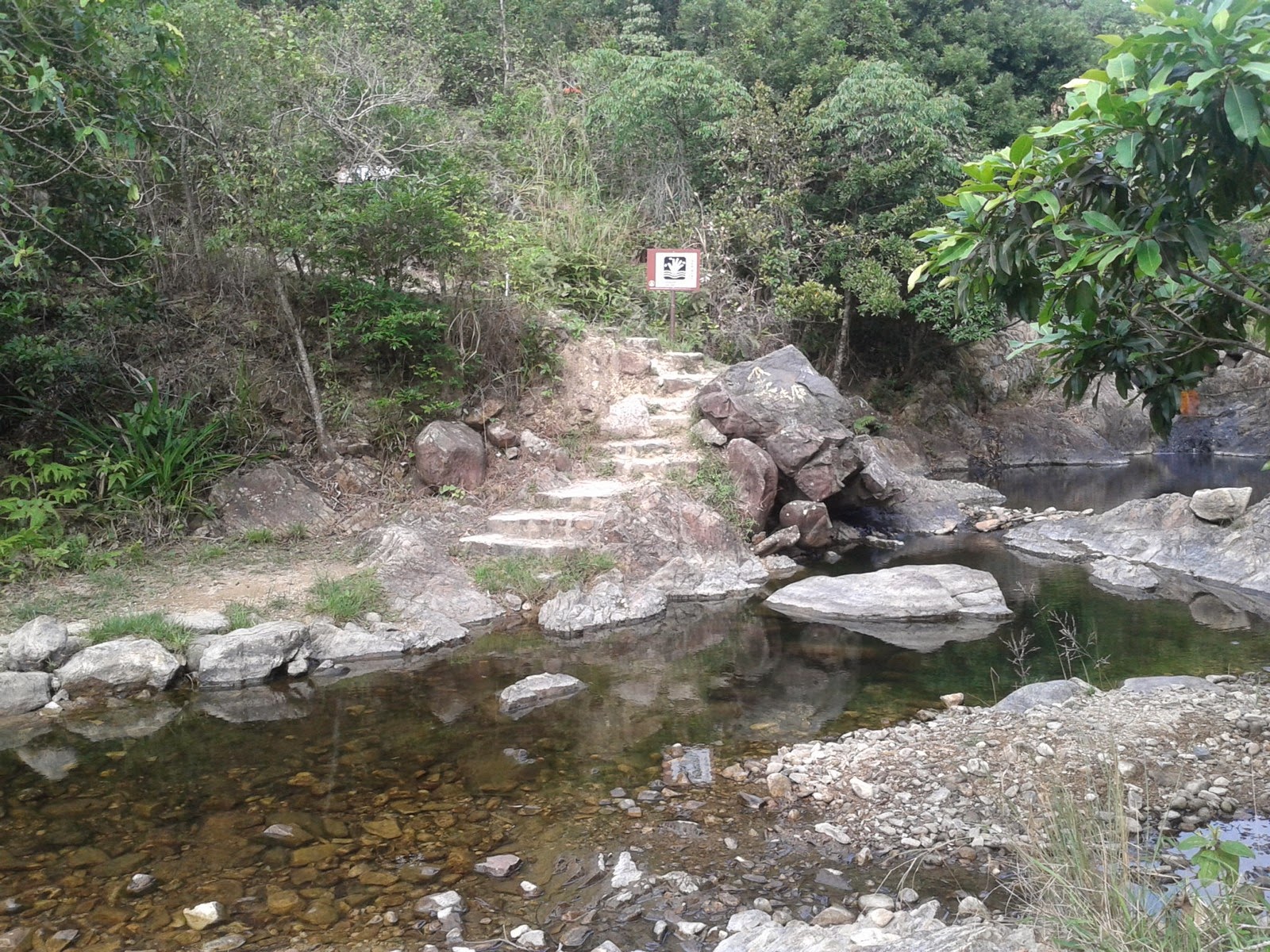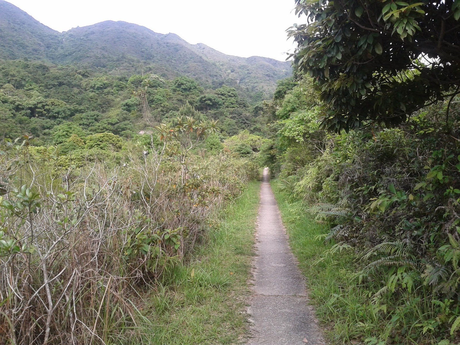 從水浪窩出發,又要沿沉悶的引水道馬路往榕樹澳。未知全球暖化問題是否日益嚴重,還是今年是厄爾尼諾年的關係,未到「立夏」節氣,感覺已處盛夏,下車後不久,就已汗流浹背!慶幸的是,因交通管制關係,沿途車子不算太多,否則在路上不斷的左閃右避,只會消耗更多體力。走了四十五分鐘,到達榕樹澳附近,有山路上「榕北坳」,屬「榕北走廊」的前半段,路況大致平緩易走(因那裡也屬越野單車徑一部分),穿過引水道起點及澗道後開始上山,而近榕北坳處則是類似原始森林的路段。